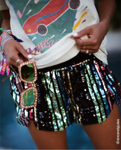 Fini l’époque où le glitter et le strass étaient réservés aux soirées, on ose le porter en journée pour égayer et donner du peps à un look.